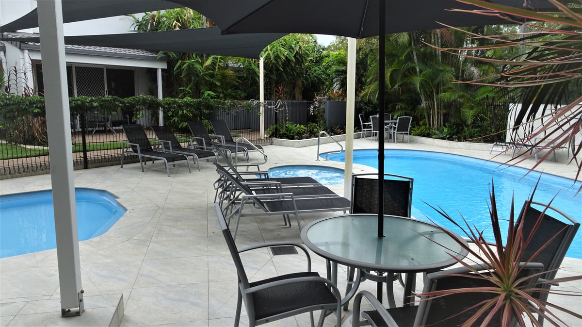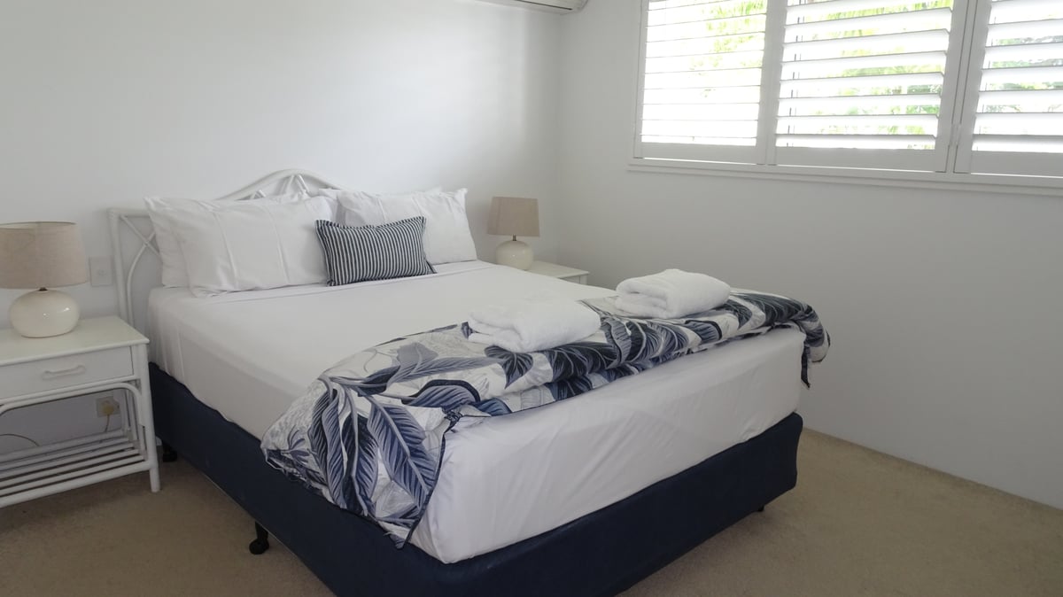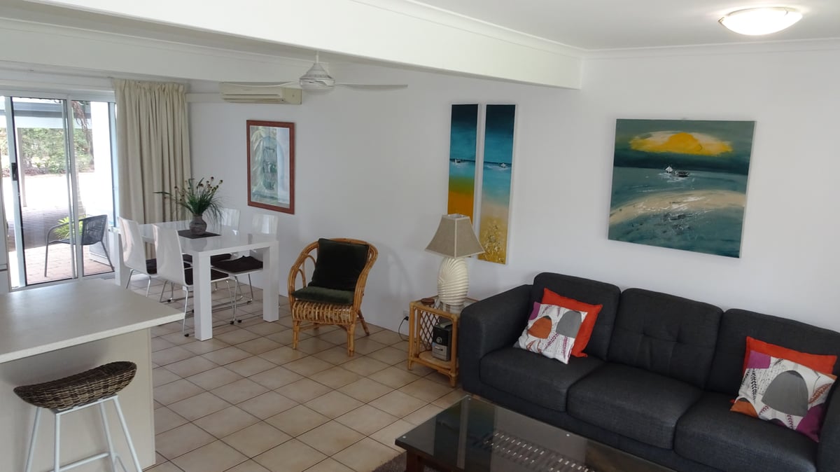 Noosa Gardens Riverside Resort situated in Noosaville on Queensland’s Sunshine Coast. The Resort looks to Keyser Island which is part of the Noosa River Biosphere and only 200 metres to the restaurant strip of Gympie Terrace on the Noosa River. Our spacious 2 bedroom townhouses are fully self-contained with well equipped kitchens, open lounge and dining areas. Also includes a full laundry and second toilet downstairs. Noosa Gardens Riverside Resort is designed so our guests can enjoy the lush tropical gardens leading to our pools. Our large pool and spa are heated which allows guests to relax and unwind after a day of golf, cycling or walking in the natural beauty of Noosa. We also have a toddler pool which is great fun for the family. The townhouses surround an expansive lawn and tropical garden leading to an alfresco bbq and seating area to entertain your family and friends.